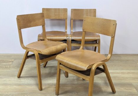 • Set of Four 1970s Plywood Adult-size Church Stacking Chairs – Set #3