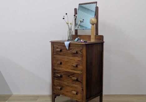 • Vintage 1940s Oak Dressing Chest of Drawers with Mirror