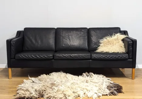 • Original Danish Black Leather Three Seat Sofa by Vemb Polstermobelfabrik