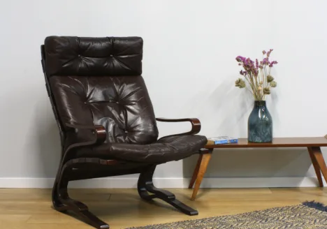 • Original Hove Mobler 1970s Danish Tall Deep Brown Leather ‘Skyline’ Armchair