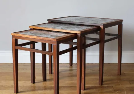 • Stunning Set of Three Vintage Danish Rosewood Tiled Side Tables