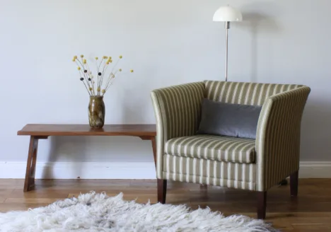 • Vintage Danish Tub Armchair in Striped Wool