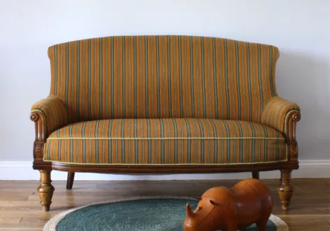 • Vintage Early Midcentury Danish Striped Two Seater Sofa
