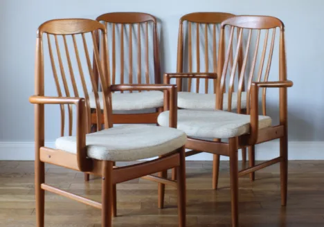 • Set of Four Danish Benny Linden Solid Teak Dining Chairs