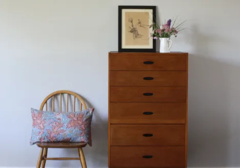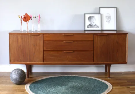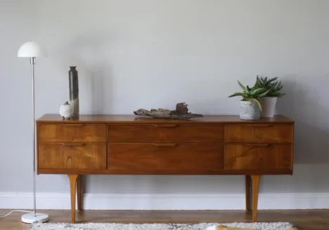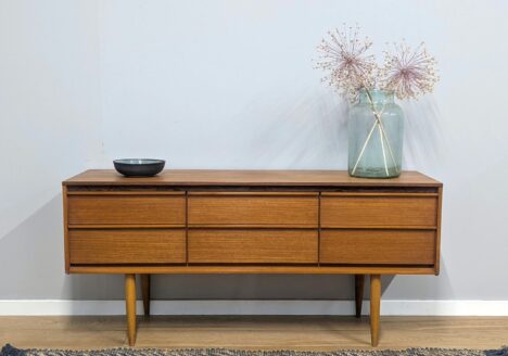 Austinsuite became especially well known for its bedroom and dining furniture, often crafted in teak and other fashionable woods of the period. The company’s designs reflected the influence of Scandinavian modernism, with clean lines, gentle curves, and practical storage solutions. Signature features included sculpted drawer pulls, slim legs, and well-proportioned forms that balanced elegance with everyday functionality.