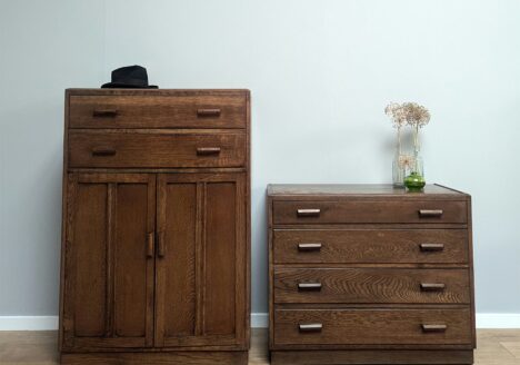 Utility furniture, produced under this scheme from 1942, was designed to be functional, economical, and durable. With timber supplies limited, the government restricted the use of decorative veneers and unnecessary ornament. As a result, furniture was typically made from solid woods such as oak or beech, with simple forms, straight lines, and minimal detailing. Standardised designs were approved by the Utility Furniture Advisory Committee, ensuring consistency and efficiency across manufacturers.