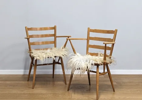 During the 1960s and 1970s, Ercol expanded its range to include entire room sets, reflecting changing lifestyles and the growing popularity of open-plan living. Designs such as the “Golden Dawn” and “Old Colonial” ranges featured light elm wood, clean lines, and a distinctly modern yet timeless aesthetic. The use of solid elm, often sourced from British trees affected by Dutch elm disease, became a defining feature of Ercol furniture during this era.
