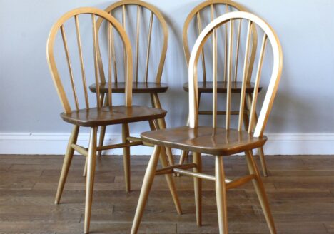• Set of Four Midcentury Ercol Model 400 Windsor Dining Chairs