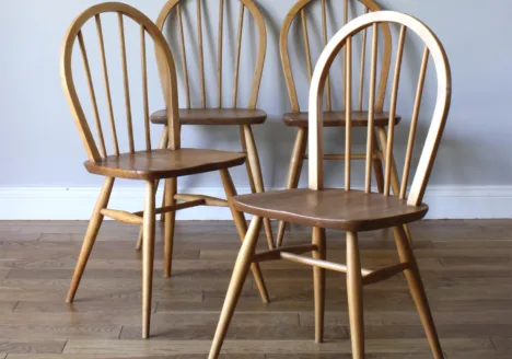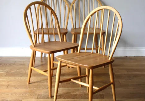 • Set of Four Vintage 1960s Ercol Model 400 Windsor Dining Chairs