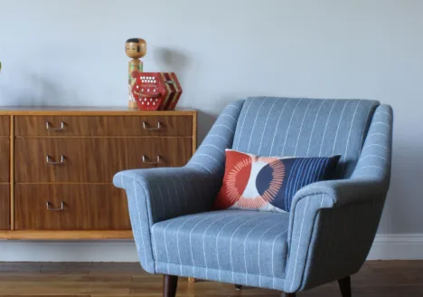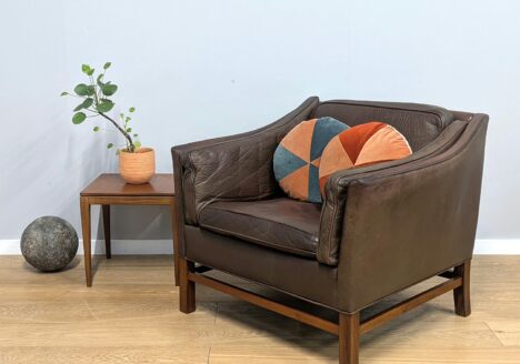 His seating designs emphasised relaxed comfort combined with clean, architectural forms. Thams often used solid timber frames—typically teak or oak—paired with upholstered cushions that balanced structure and softness. His lounge chairs frequently featured gently angled backs, wide armrests, and carefully proportioned seats, creating pieces that were both visually light and ergonomically considered. Sofas followed a similar language, with modular or compact forms suited to modern living spaces.