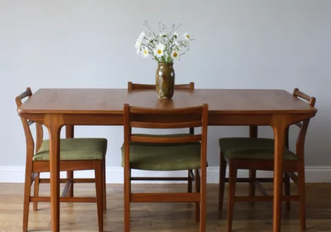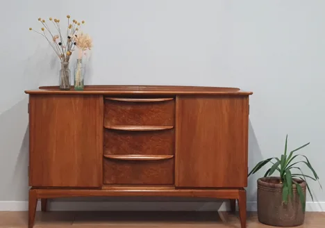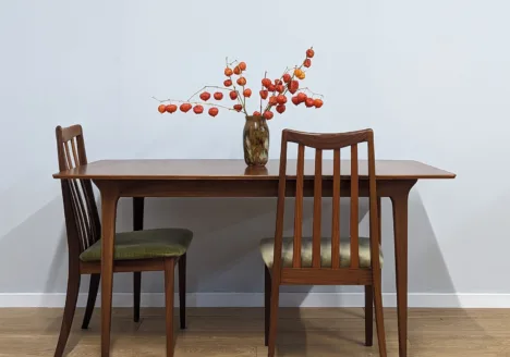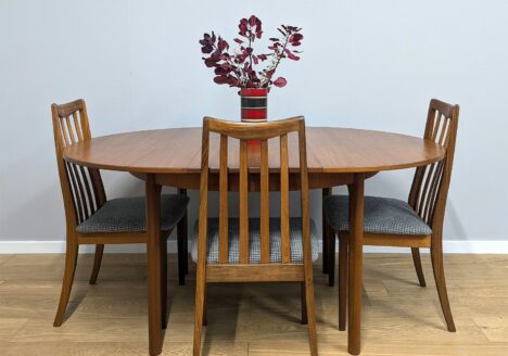 During the 1950s and 1960s, McIntosh became synonymous with high-quality teak dining furniture, helping define British interpretations of Scandinavian modernism. Their pieces were known for elegant proportions, rich timber grain, and refined detailing such as sculpted handles and smooth, organic curves. The company’s dining sets, sideboards, and extending tables were especially popular, combining practicality with sophisticated design.