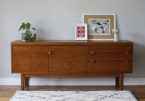 In the 1950s and 1960s, Nathan became one of Britain’s best-known furniture brands, particularly celebrated for its teak living and dining ranges. The company helped popularise mid-century modern design in the UK, offering stylish yet accessible pieces characterised by clean lines, rich wood grain, and practical features such as extending tables and modular storage. Nathan’s furniture struck a balance between contemporary Scandinavian influences and traditional craftsmanship, appealing to a wide middle-class market.
