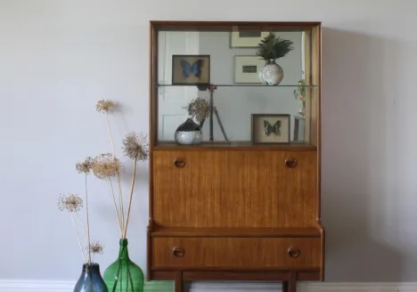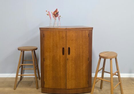 During the 1950s and 1960s, Turnidge became especially well known for its stylish cocktail cabinets and drinks bars, which reflected the growing culture of home entertaining in Britain. These pieces often featured rich woods such as teak, rosewood, and mahogany, combined with distinctive details like mirrored interiors, glass shelving, and sculptural handles. The company’s designs balanced glamour with practicality, offering both storage and display in compact, elegant forms.