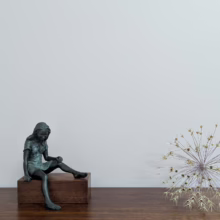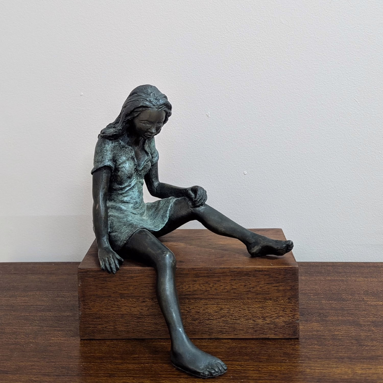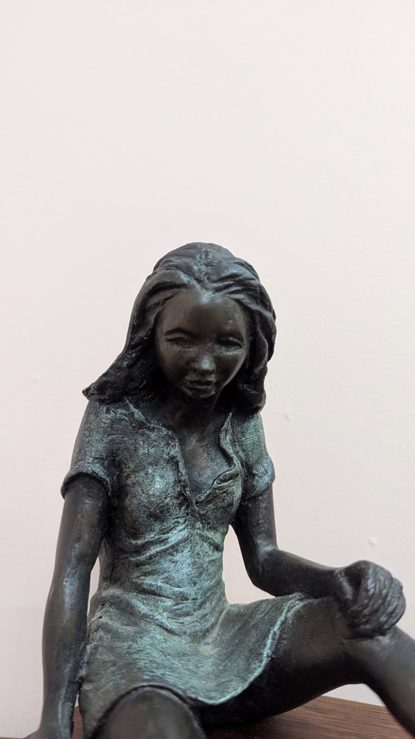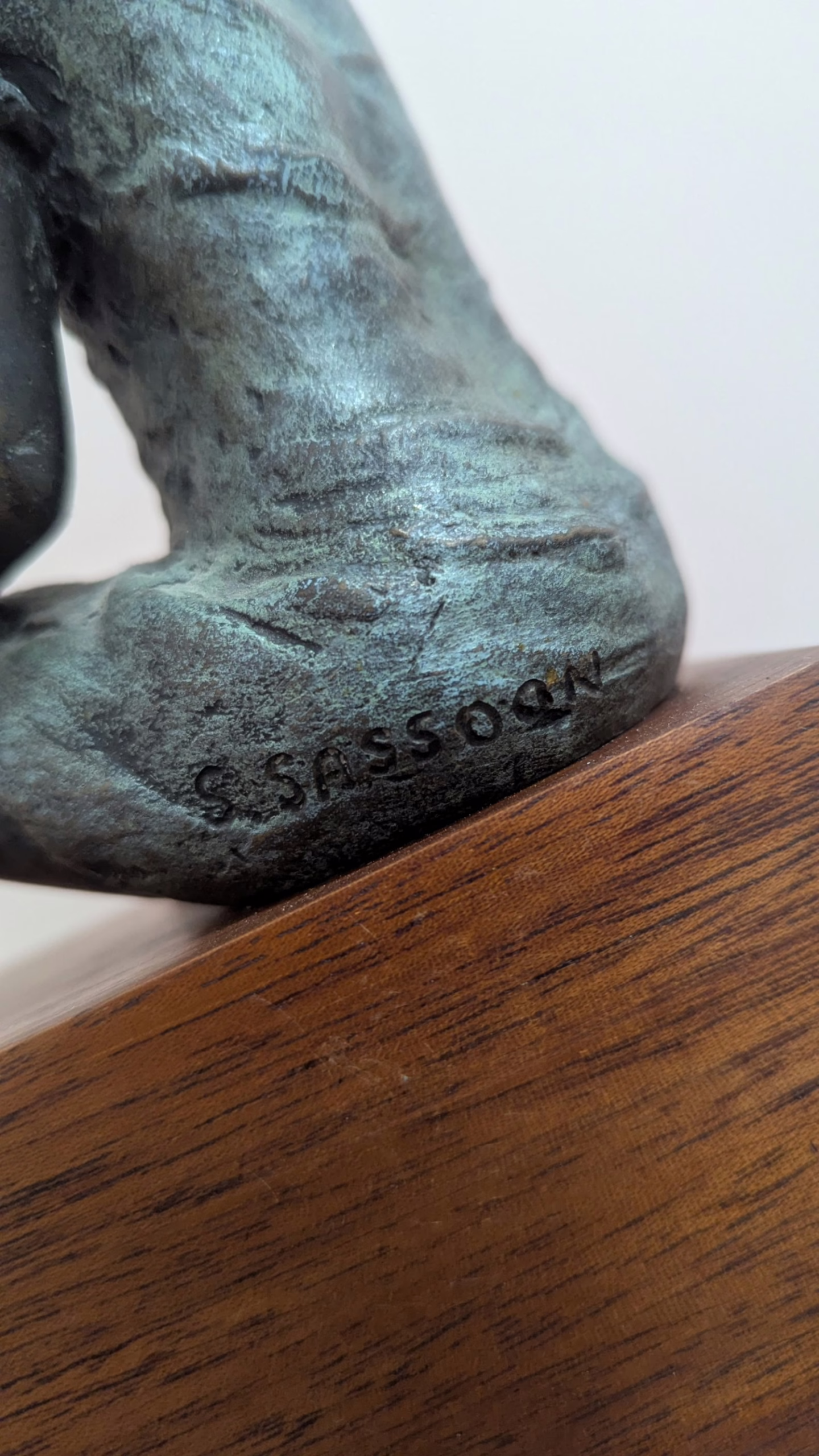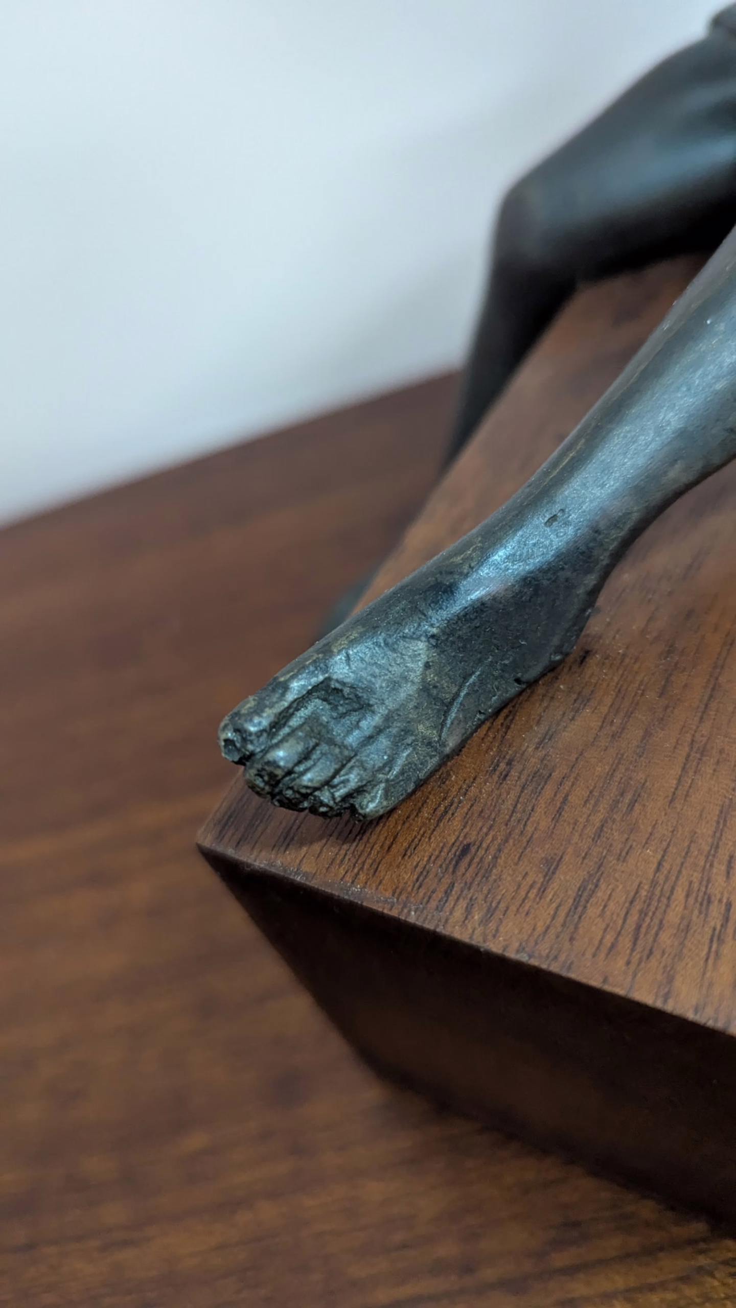 ‘Sold as seen’ in good – very good, used condition. We have restored the wooden plinth on which she sits but have otherwise left the sculpture itself alone. The signature can be found at the base of her back. Please browse our photos for an accurate sense of colour and condition.