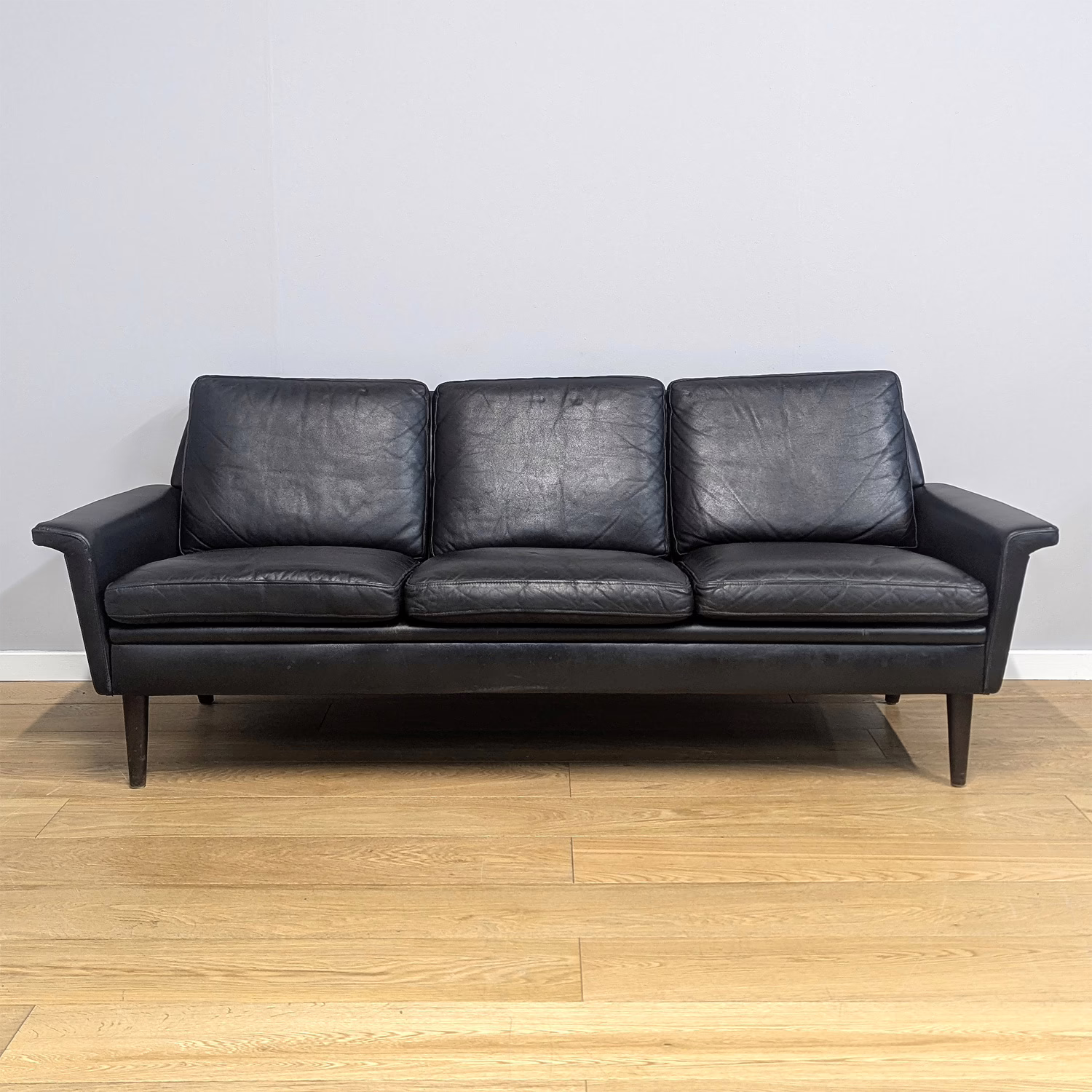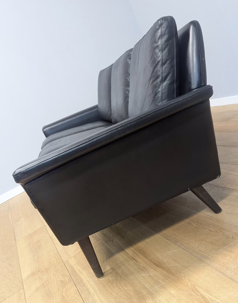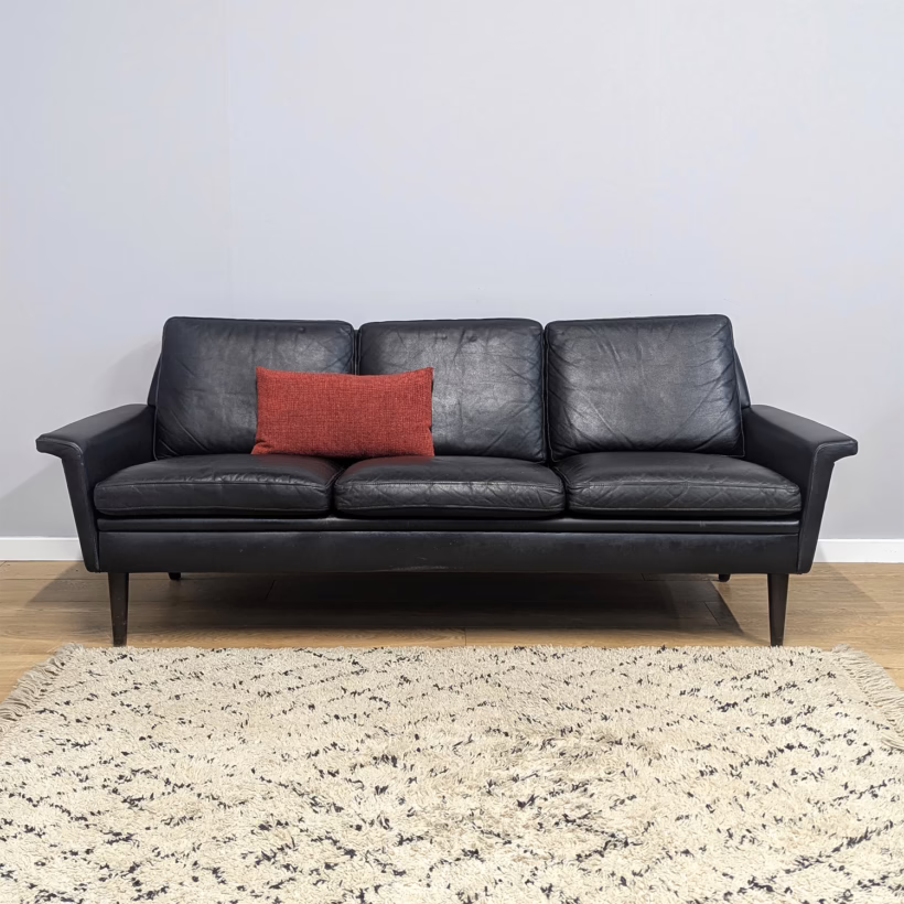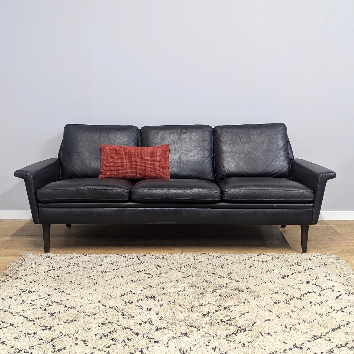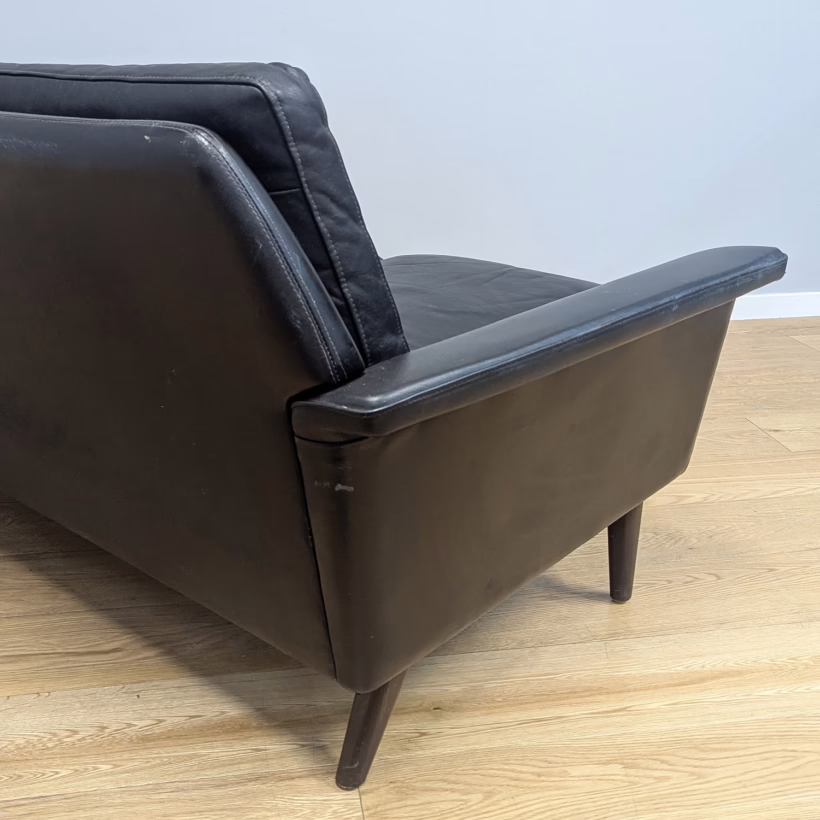 Classic Danish Midcentury 1960s Black Leather Sofa