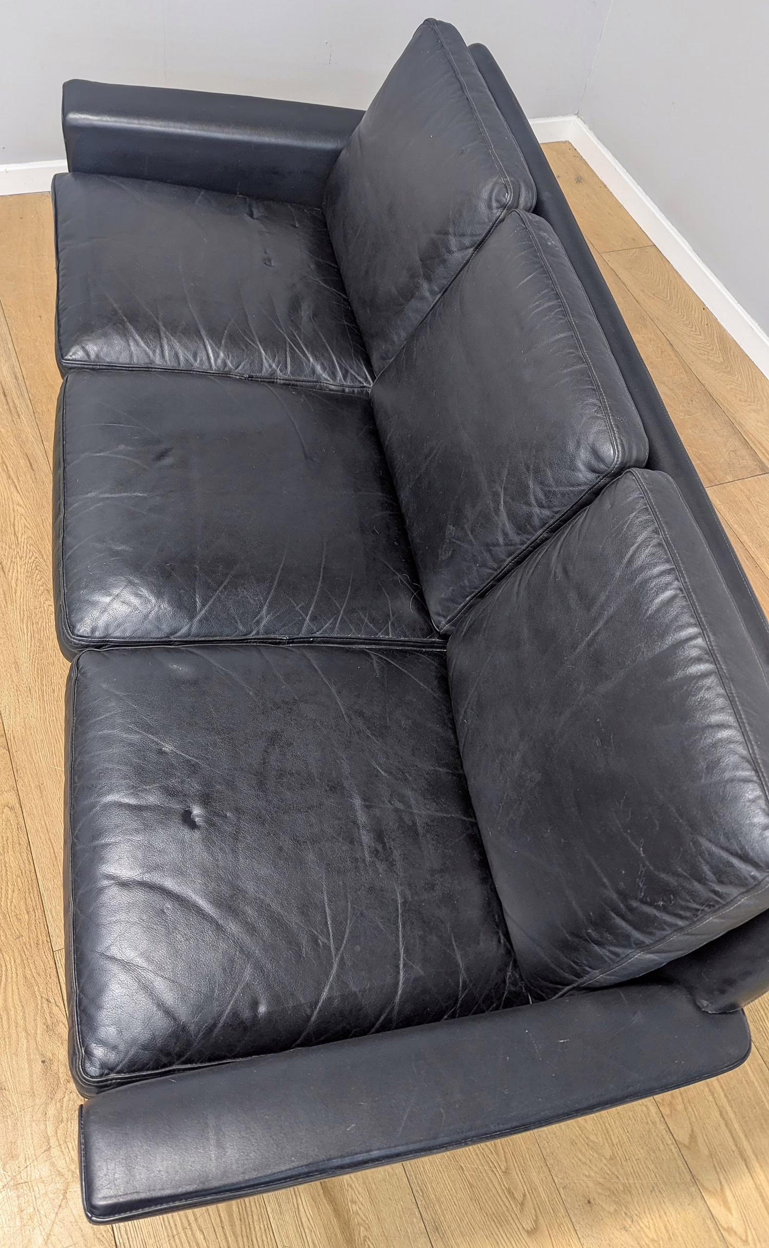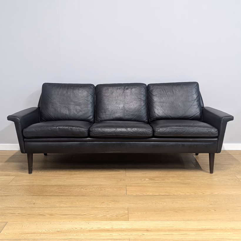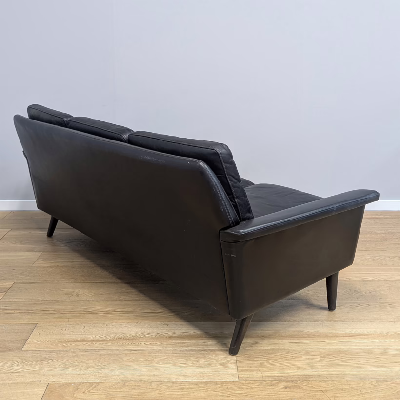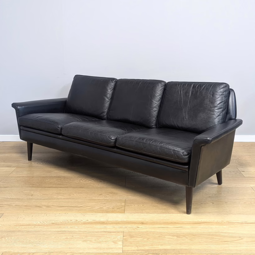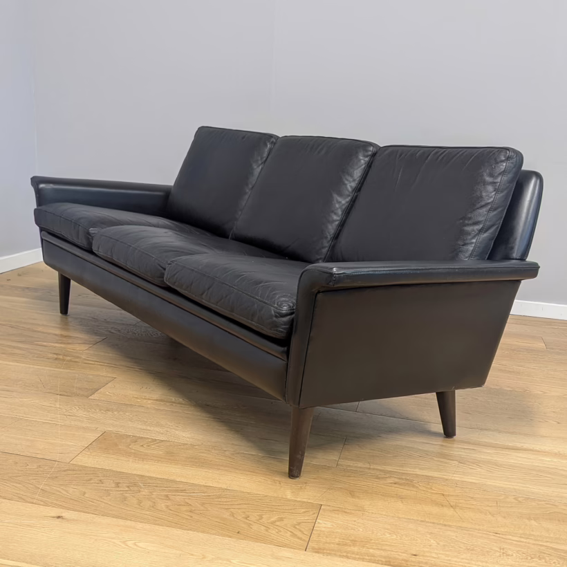 Classic Danish Midcentury 1960s Black Leather Sofa