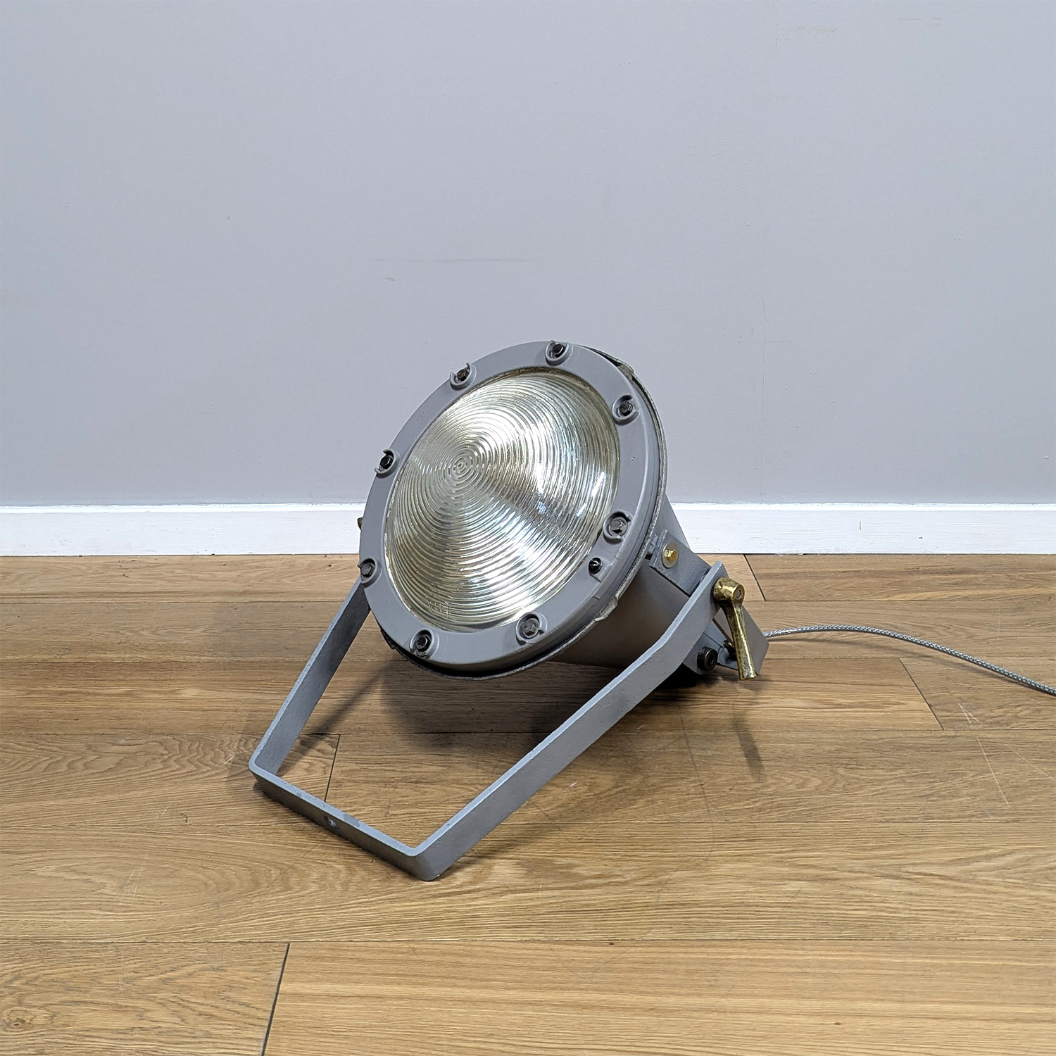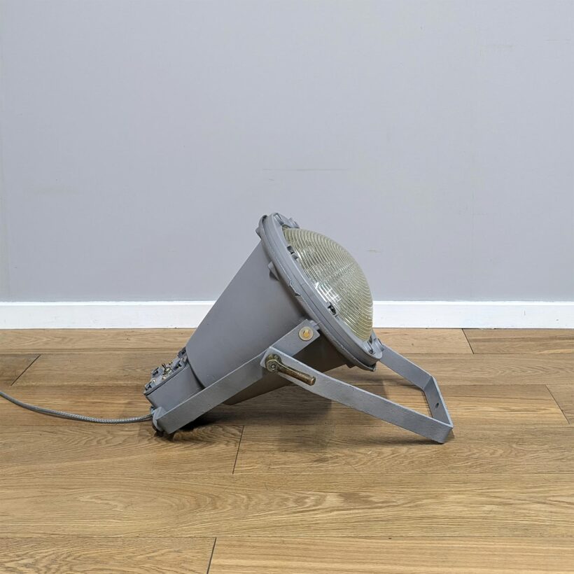 This original, vintage lamp is ‘sold as seen’. It is in good – very good, used condition and has been restored and PAT tested. As you can see from our photos, there are some light tarnishes and scuffs here and there to the metal work / casing but these are very minor and don’t in any way detract from the appeal of the piece. It comes with a generous length of flex. The height / angle of the lamp can be adjusted with the arms on either side of the lamphead.