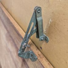 This is an original, vintage piece that is ‘sold as seen’. It is in good – very good, used condition. We have checked and cleaned the piece and the table top has been restored which involved careful stripping, sanding, oil and a wax polish, completing a partial restoration. The other exterior surfaces have had a natural beeswax polish applied to their original finish to restore their shine. All six drawers – three shallow ‘hidden’ ones along the top and three large, deep lower ones – are beautifully constructed, slide with ease and are in clean and tidy order inside. The middle top drawer is velvet lined. The exterior wood does carry light signs of age and use – faint scuffs and superficial marks here and there. It’s minimal overall. Do browse our photos for an accurate sense of condition. The full width mirror rests on two uprights at the back and can be tilted back and forth with a hinge in good working order. The mirror is in very good condition too. It is sturdy and solid with no signs of repair. The Elliotts of Newbury label can be seen inside a top drawer, and at the back, you can see the RHF stamp and date.
