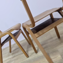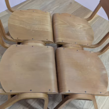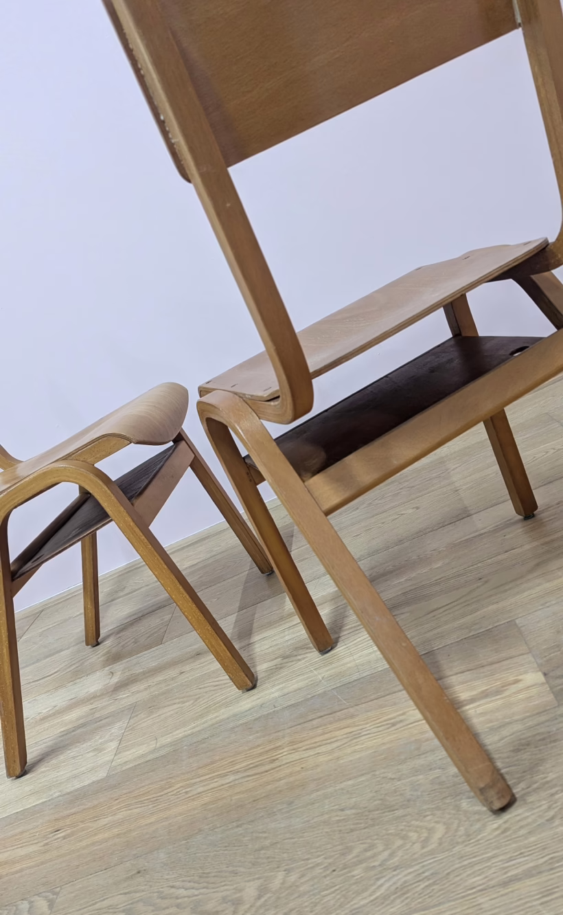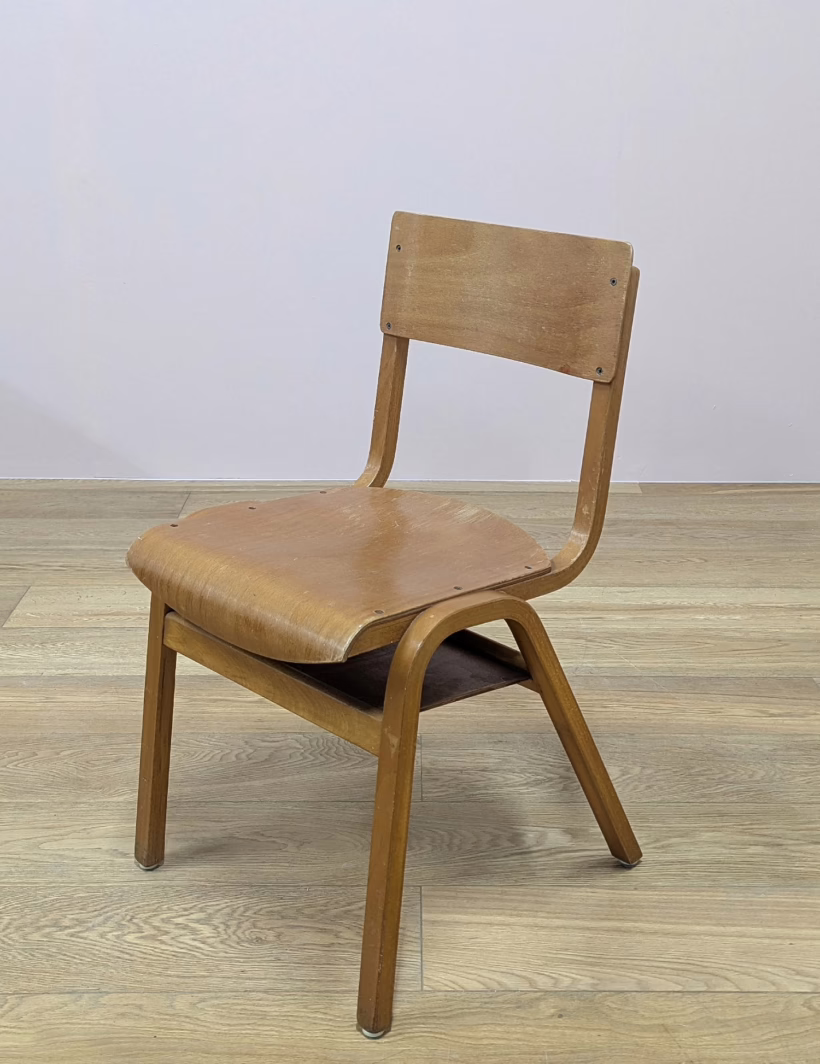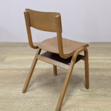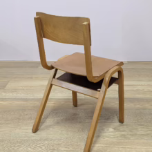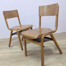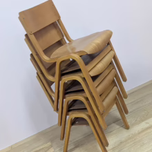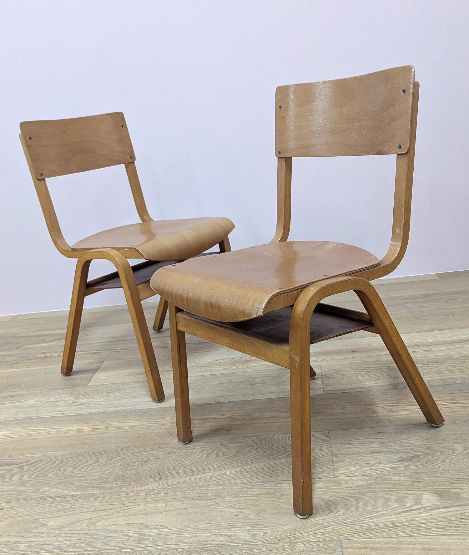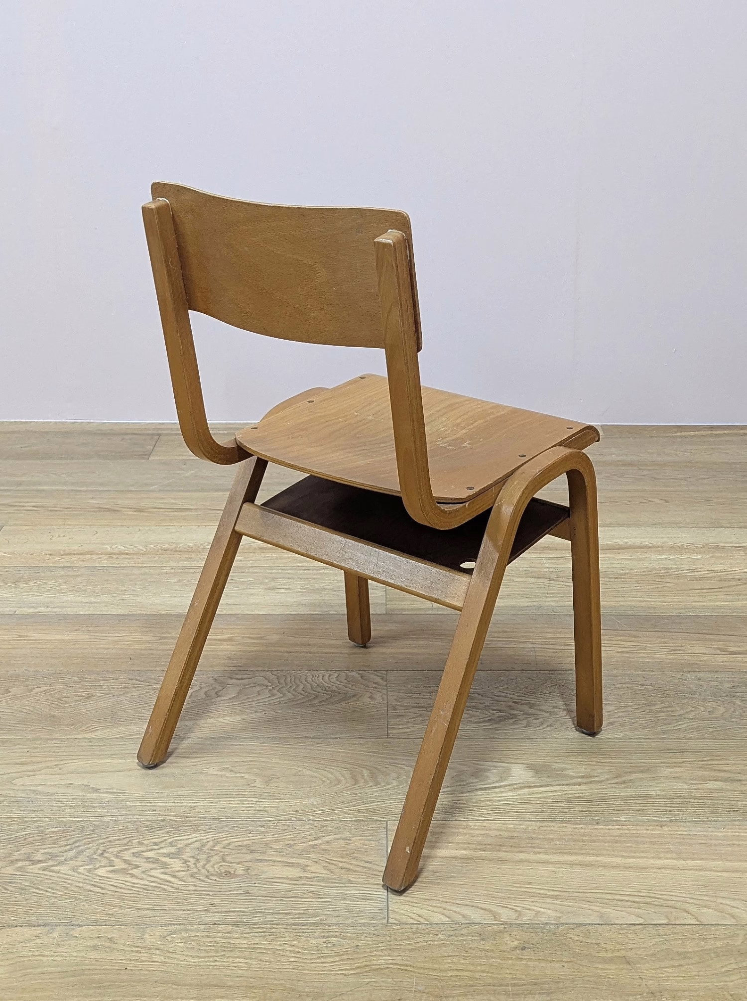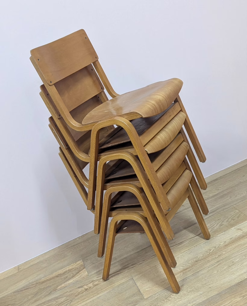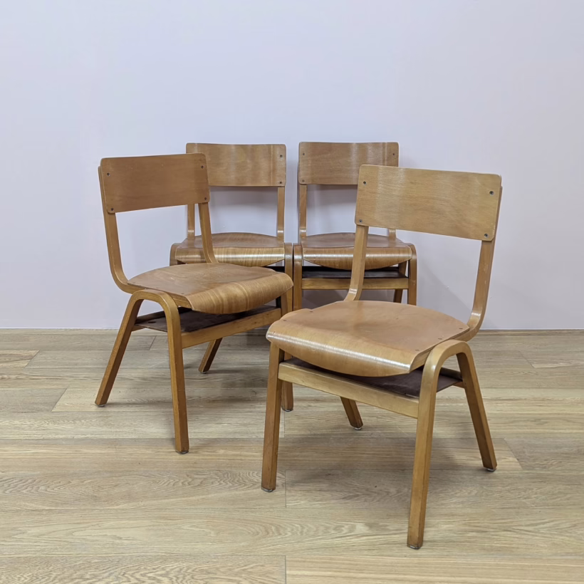 This set of four original, vintage chairs is ‘sold as seen’. They are in good, used condition. The frames have been checked and cleaned but otherwise the finish / condition is original. The chairs do carry minor, superficial scuffs and marks here and there but nothing to call out. This wear and tear is light and in line with their considerable age. Do browse our photos for an accurate sense of this. The chairs are solid and sturdy with no wobbles. They all have rubber gliders on their feet and stack easily. They have only had one previous owner – a chapel in Ipswich who have too many! Please take a moment to browse through our photos for an accurate sense of wood tone and condition. Any queries, please do get in touch. Happy to help!