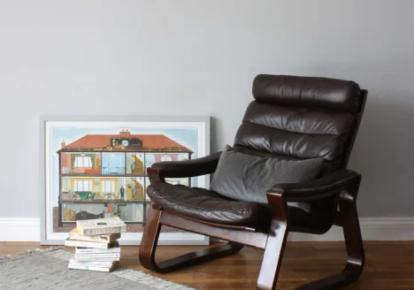Here’s a classic, midcentury Danish lounge set comprised of a matching two seater sofa and armchair, both unfussy, super stylish and looking great from all angles. Attributed to Georg Thams, he designed this range in collaboration with Grant Møbelfabrik in the first half of the seventies. They are in their original mid-brown leather, the upholstery is lightly lived in, rugged and hard-wearing, getting more characterful and better with age and use. We love the gentle contours of the sides and arms which soften what might otherwise be a boxy, austere silhouettes. They sit on rosewood bases which complements the leather tones perfectly. Comfort is a tricky thing to describe as its so subjective but we would say the sofa and chair as ‘medium firm’. The sofa and chair are available for purchase separately – see their individual listings.