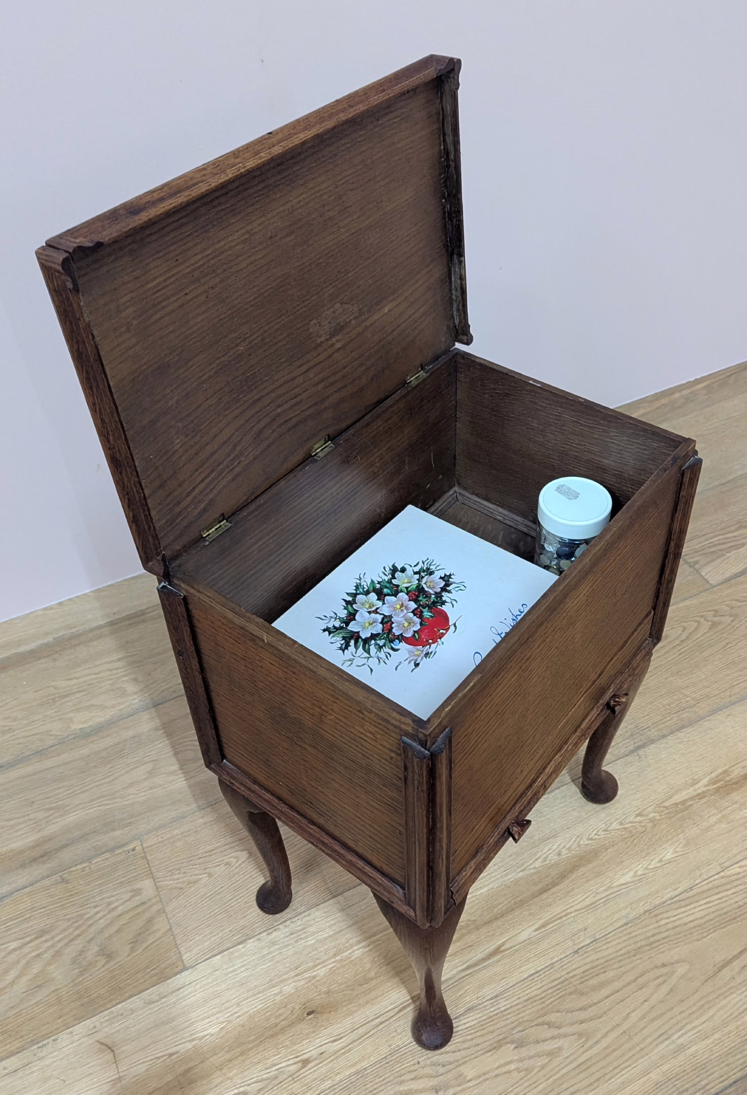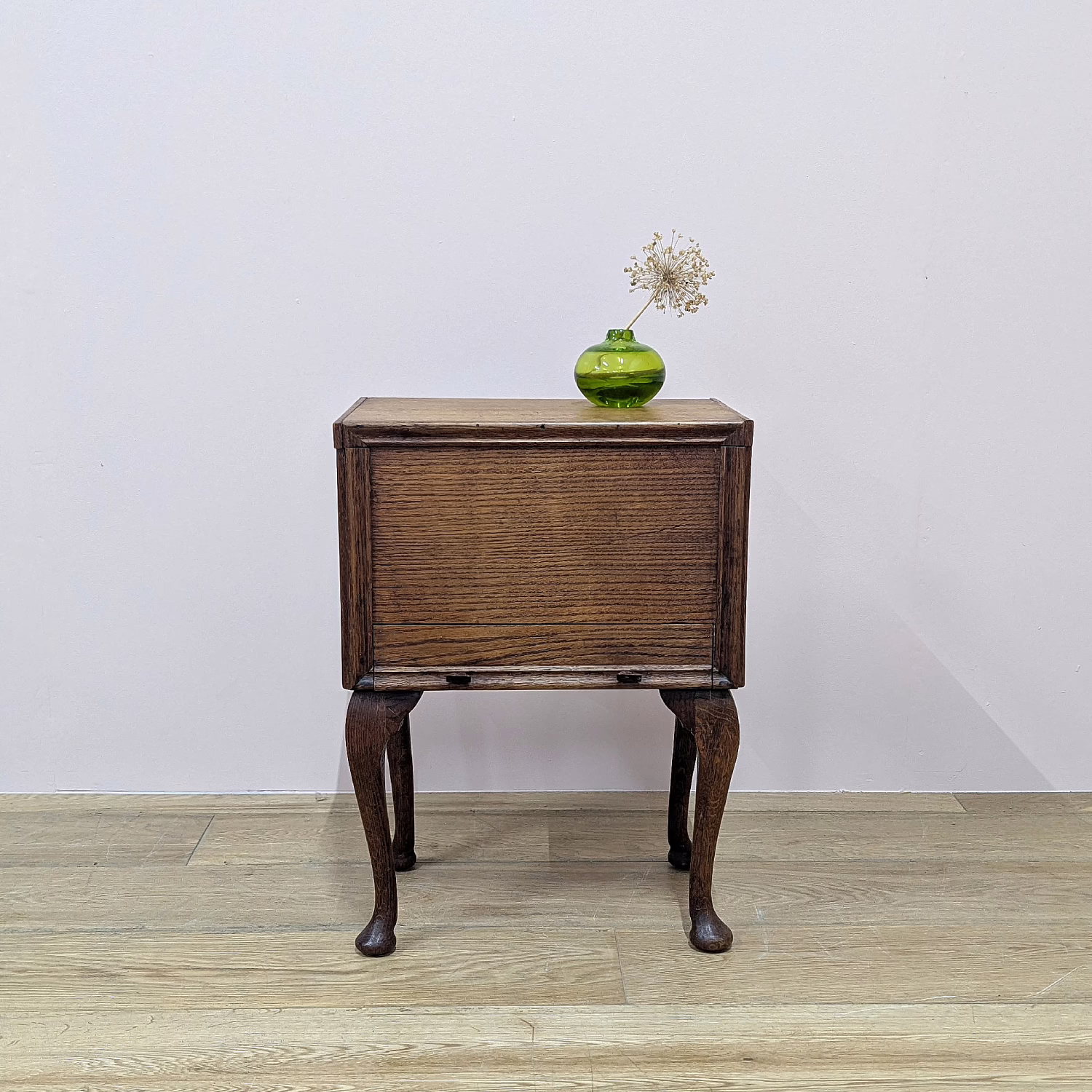 This is a little charmer. Dating from the early 20th century, it’s a pretty oak sewing table / box. Lift the lid to find a spacious compartment for your latest projects. And below there is a slim drawer designed for spools of thread. It comes with a range of its original contents… needle cases, fastenings, buttons and wooden reels. We love the long cabriole legs. A super gift for the seamstress, knitter, crafter in your life. But it doesn’t have to be used as originally intended. The proportion of this little table would make it an excellent nightstand.